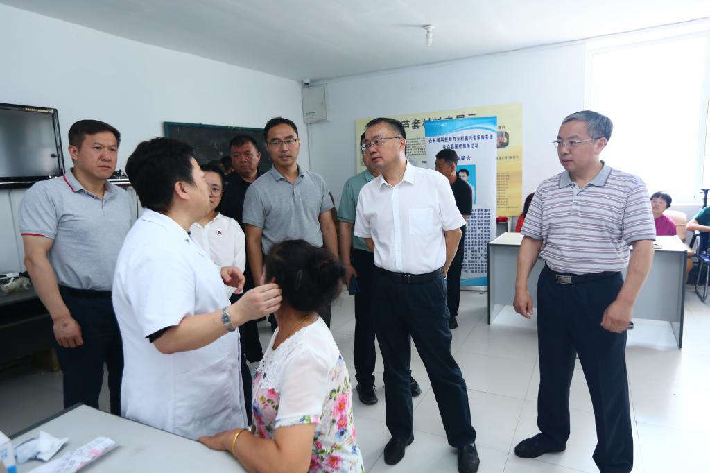 在村部居民活动室,人来人往、络绎不绝。此时,学校邀请的吉林省科技助力乡村振兴专家服务团专家们正在为村民进行健康义诊,这次义诊活动是根据前期对村民需求进行调研基础上组织实施的,也是主题教育期间,我校开展“我为群众办实事”的一项重要实践活动。王延明向参加这次义诊活动的专家表示感谢,在与村干部交流时指出,这次义诊活动真正地将“健康帮扶”与“乡村振兴”有效衔接,接下来,学校将进一步做好做实调查研究,听民声、汇民意、解民需,不断创新工作举措,切实提高村民群众的幸福感、获得感和满意度。