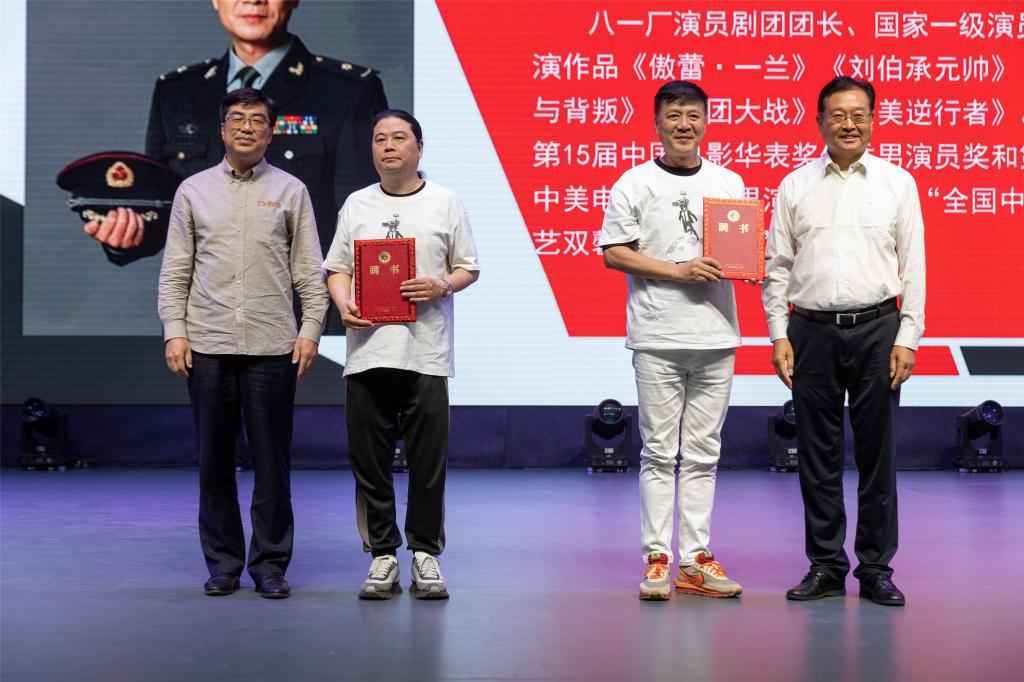 学校科研处处长费龙、美术学院院长曲鸽为崔国明颁发文旅与电影学院总制片人聘书。