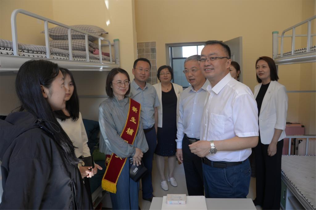 在长吉校区,刘多、王延明一行检查了校园内各处迎新点、研究生报到处、绿色通道、征兵服务点、食堂等地,向全力筹备新生入学工作的辅导员、学生志愿者、工作人员表示亲切问候。每到一处,仔细了解迎新工作的具体安排、特色亮点以及新生报到情况,要求各学院要用心用情做好迎新工作,高效细致做好服务保障,让新生及家长感受到无微不至的关怀与温暖。各单位要进一步协同联动,做好做实迎新工作,营造更加温馨有序的迎新环境,让新生感受到家的关爱和温暖。