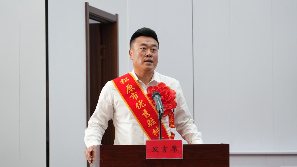 在长岭县驻村干部轮换暨总结培训大会上,我校新任派驻五撮村驻村第一书记宗国仕代表全县新任驻村干部发言。
