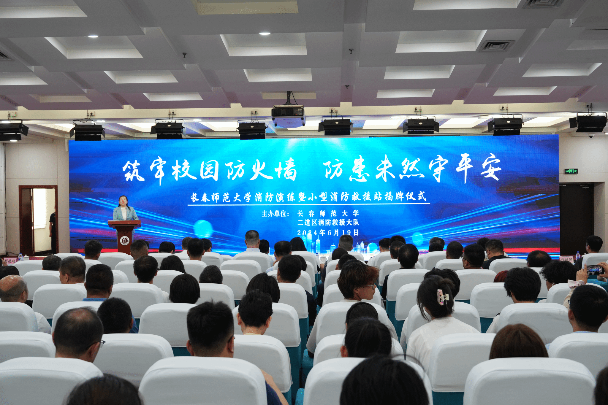 619日,我校消防演练暨全省高校首个校园消防救援站揭牌仪式在新图书馆报告厅举行。吉林省教育厅党组成员、省委教育工委专职副书记辛峰,吉林省消防救援总队副总队长靳威,我校党委书记刘多,长春市二道区副区长汤大鹏出席会议并为小型消防救援站揭牌。我校党委副书记、校长王延明出席会议并致辞,副校长陈爱梅主持会议。