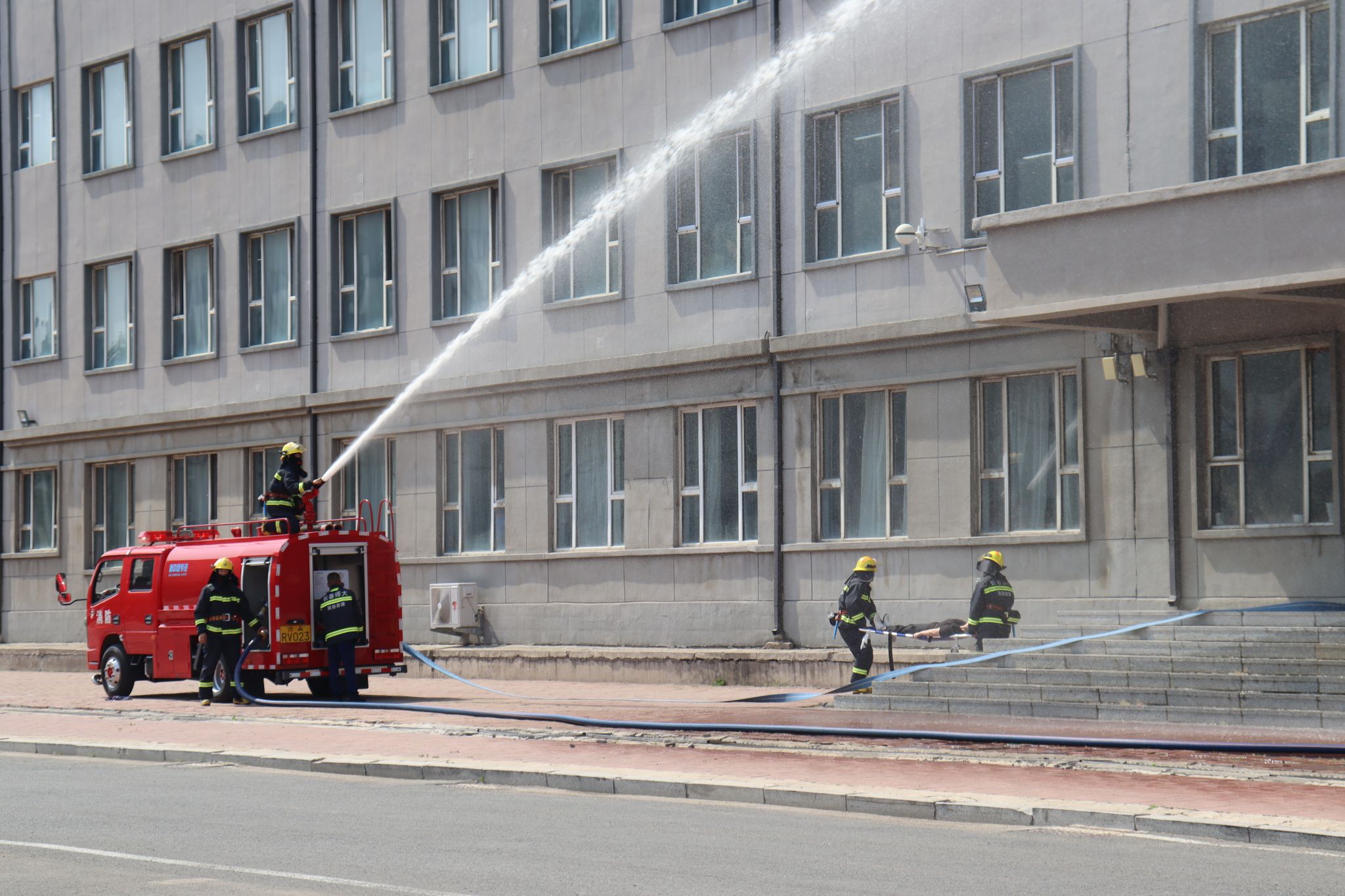 随着长春市二道区消防救援大队大队长、本次消防演练总指挥代宝喜宣布消防演练开始,本次消防演练在第三教学楼正式拉开帷幕。演练中,我校小型消防救援站全体队员在接警后,第一时间到达模拟火场附近进行疏散、灭火和救援工作。紧接着,东荣大路消防救援站、四通路消防救援站4辆消防车及消防救援人员到现场进行支援。消防救援人员利用云梯救援车、金属拉梯解救楼内被困师生,8分钟所有楼内师生解救到安全区域,消防演练圆满结束。