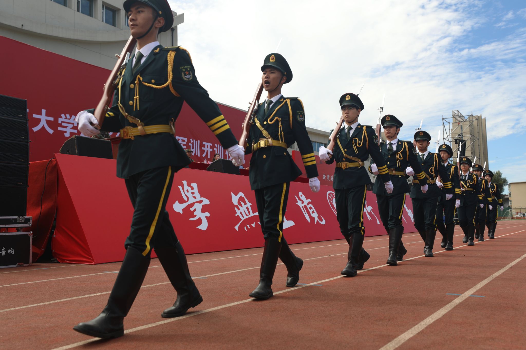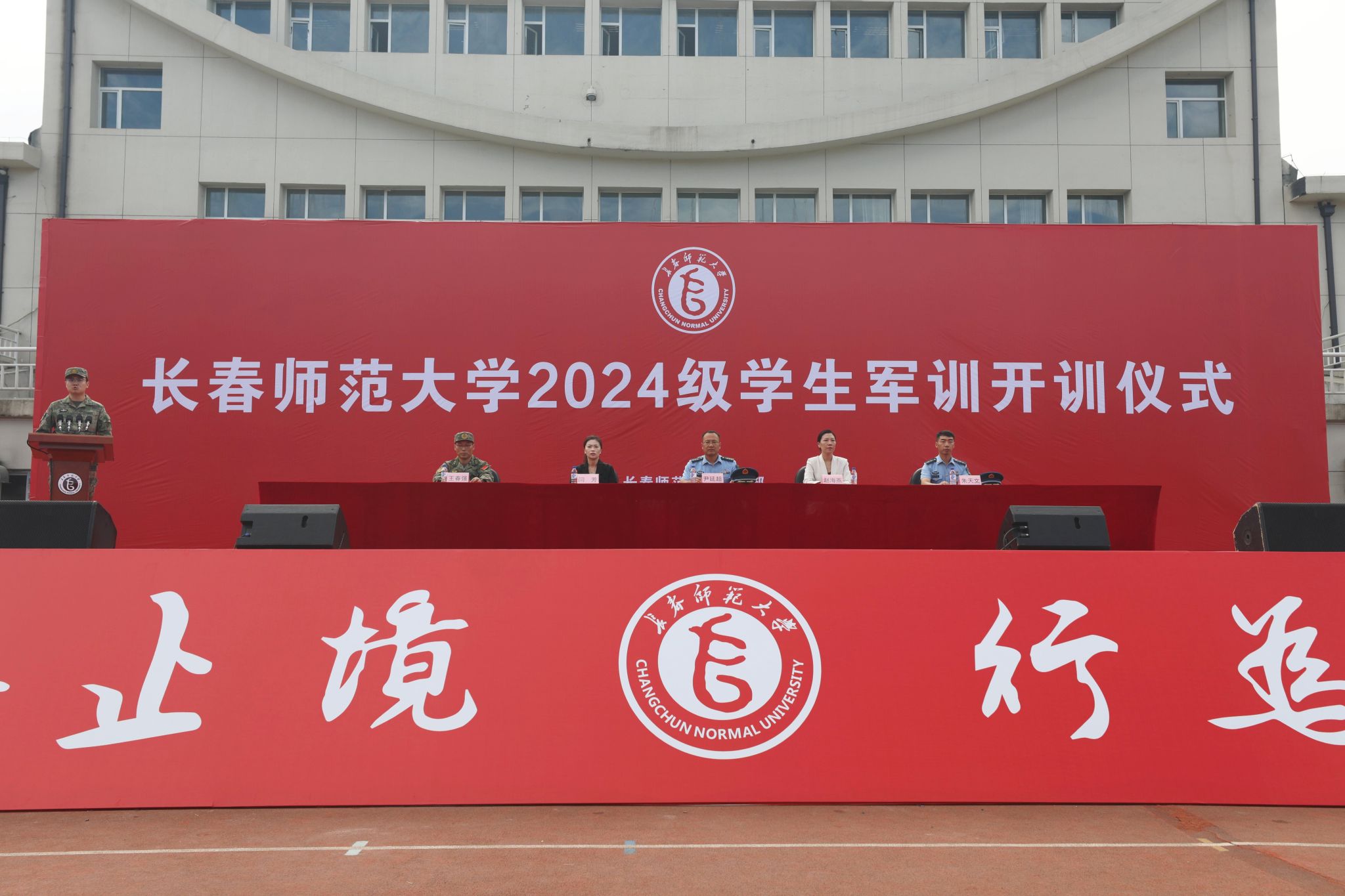 学校党委学生工作部、党委武装部、校团委等相关人员,全体带训辅导员、军训教官及2024级参训学生参加开训仪式。
